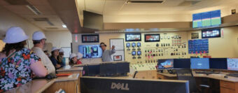 Arizona Electric Power Cooperatives Executive Director of Power Production Mike Nelson leads co-op communicators on a tour of Apache Generating Station. Photos courtesy of Grand Canyon State Electric Cooperative Association