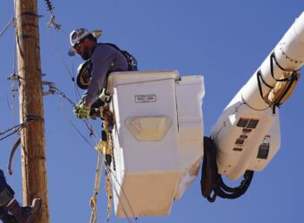 MEC Journeyman Lineman, Chad Valenzuela, volunteers for the project Light Up Navajo to bring electricity to Navajo residents for the first time.